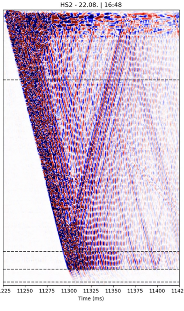 We had the thrilling opportunity to contribute to the well completion and production testing of two newly drilled geothermal wells at the geothermal site Schäftlarnstraße, in the southern part of the city center of Munich. Two fiber-optic cables were installed in the wells, one permanently cemented behind the anchor casing and one suspended in the well using a rod construction. We monitored and analyzed distributed acoustic data during the cementing phase and during a well injection testing phase.